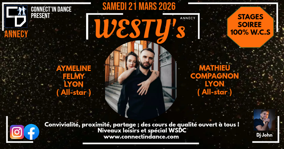 💥 STAGES 100% West coast swing avec nos invités Mathieu Compagnon & Aymeline Felmy (Lyon) danseurs All-stars international et enseignants.