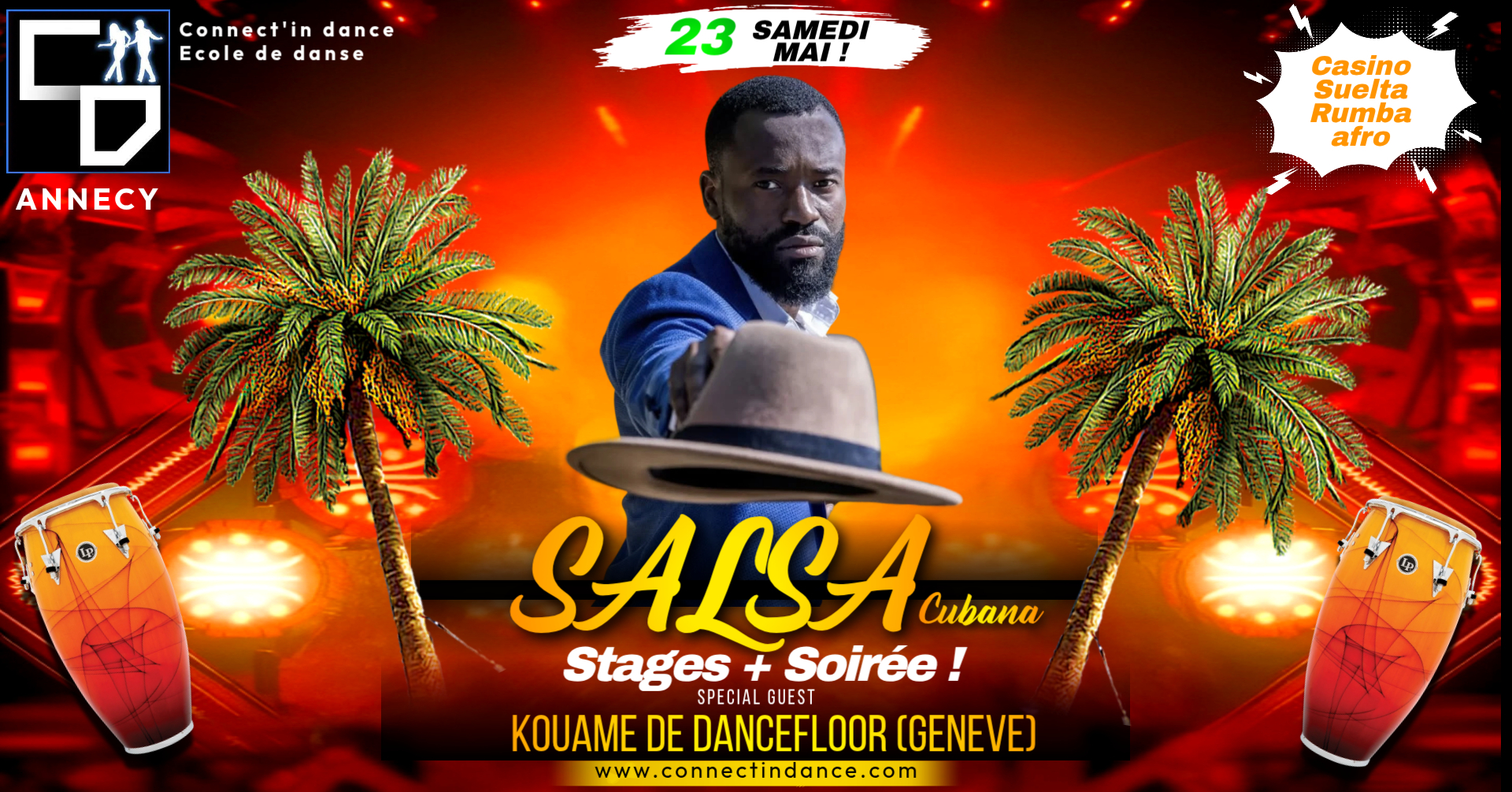 Votre école de danse est heureuse de vous proposer ce stage 100% plaisir des danses Cubaine avec pour la première fois KOUAME de dancefloor Genève !!!!
